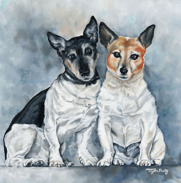 This original oil painting was a commissioned piece of a family's pups.